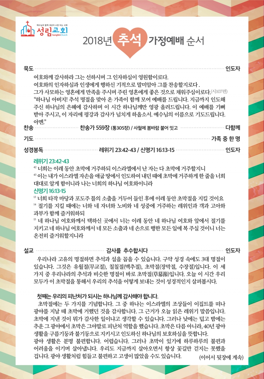 2018³â Ãß¼® °¡Á¤¿¹¹è ¼ø¼Áö |
