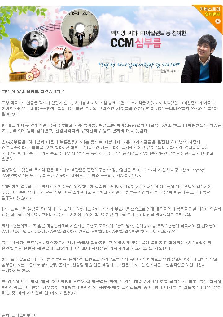 ¹éÁö¿µ, ¾¾¾ß, FT¾ÆÀÏ·£µå µî Âü¿©ÇÑ CCM ¡®½ÉºÎ¸§¡¯